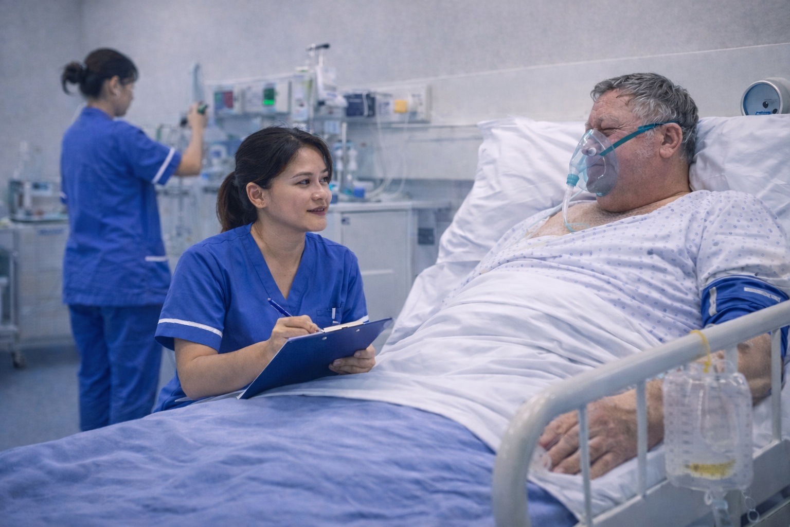 In renal and urology settings, patients often present with complex and interrelated physiological challenges. Many are living with acute kidney injury, chronic kidney disease, sepsis secondary to urinary tract infections, post-operative complications following urological surgery, or significant fluid imbalance. These conditions can directly and indirectly affect respiratory function and oxygenation. Fluid overload, metabolic acidosis, anaemia, and systemic infection are all common in this patient group and may contribute to breathlessness and hypoxia (Macdougall et al., 2016; Hoste et al., 2018).